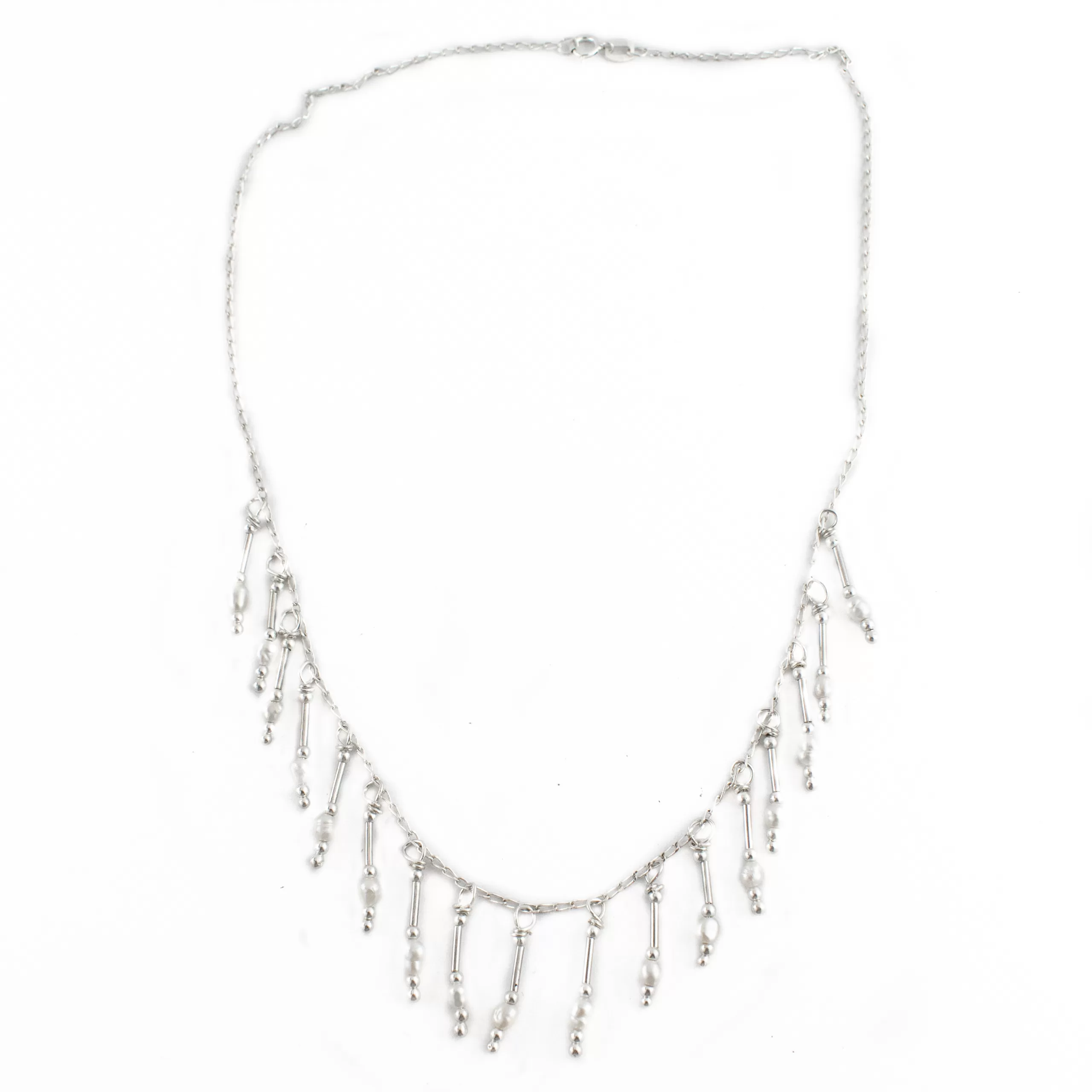A beautiful piece of jewelry made by Mexican hands, a chain and freshwater pearl necklace, using the assembled technique, measuring 40 cm long.