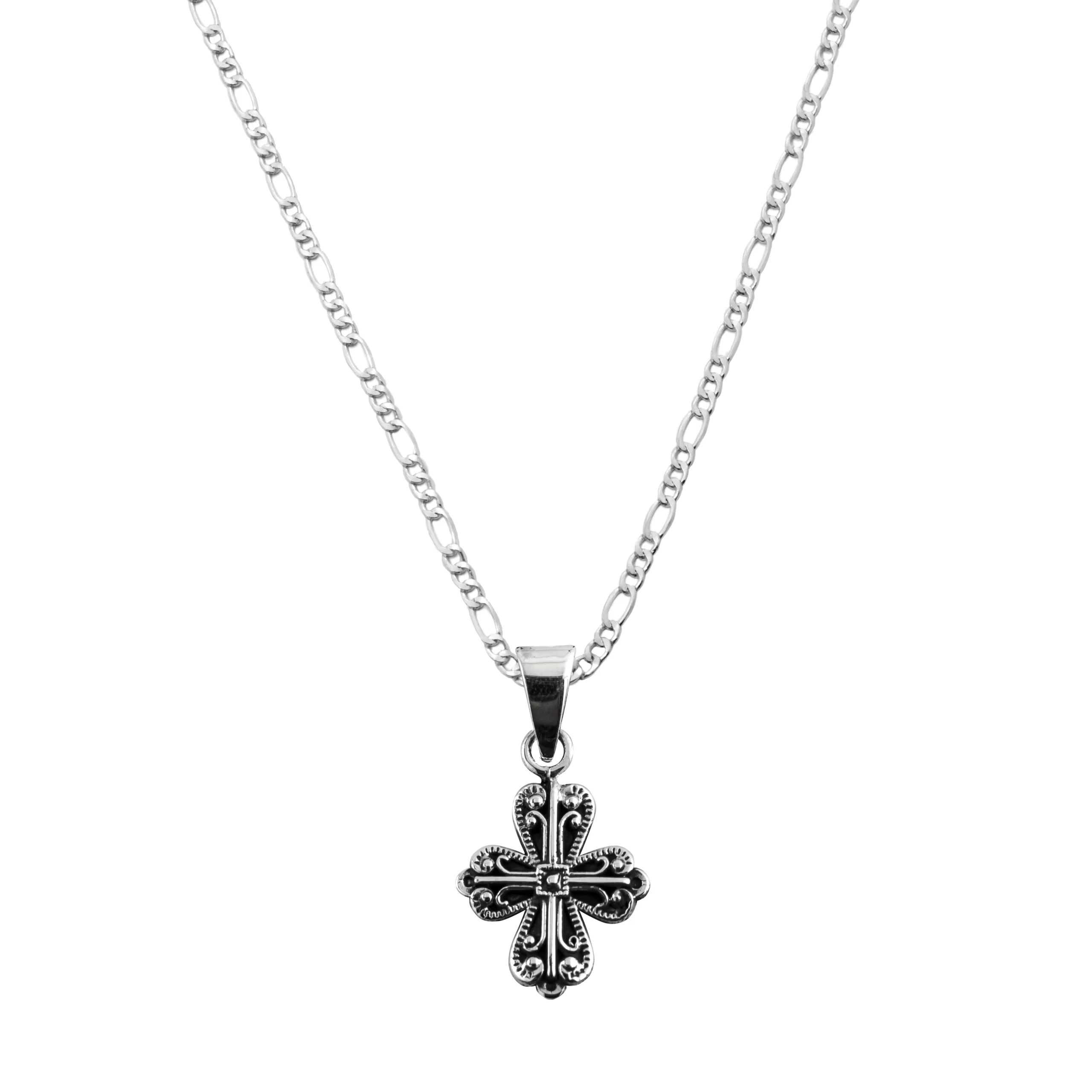 A beautiful piece of fine silver jewelry crafted by Mexican artisans. The Floral Cross model measures 3.4 cm high and 1.7 cm wide.