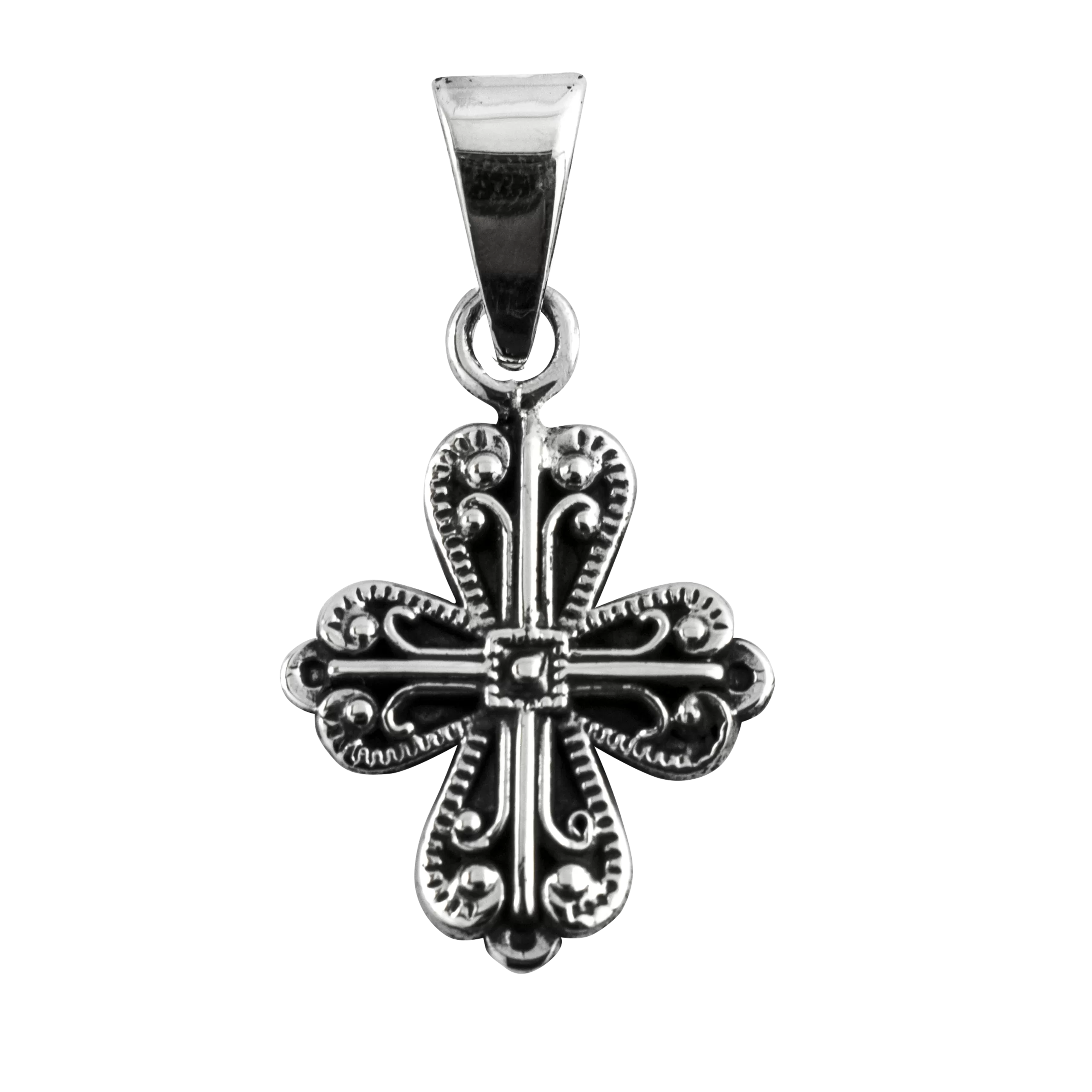 Beautiful piece of fine jewelry made in silver by Mexican hands, Floral Cross model measures 3.4 cm high and 1.7 cm wide, the price is only for the pendant, we have been manufacturers since 1964, allow us to serve you.