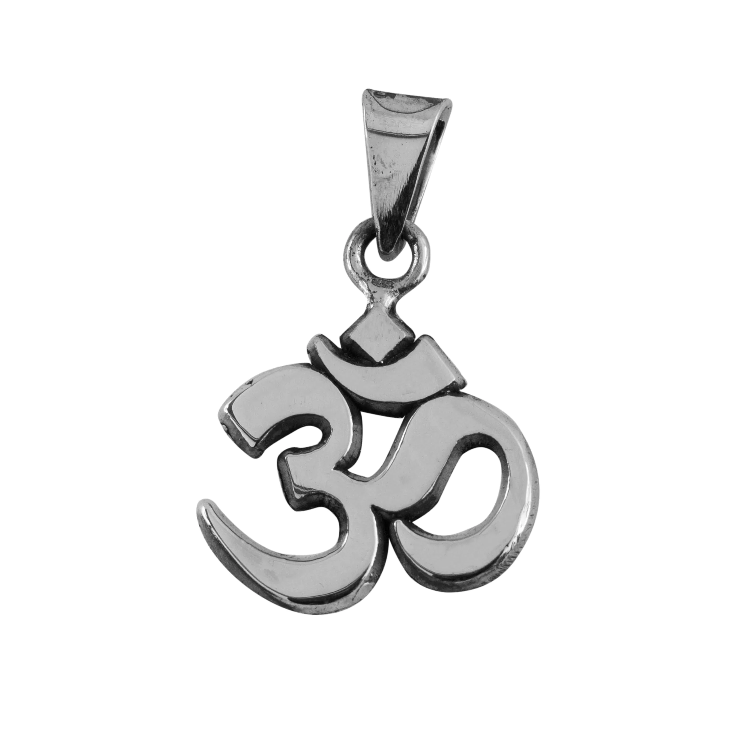 Hermosa pieza de Joyería hecha en fina Plata Ley .925 por Manos Mexicanas, Símbolo Om mediano mide 3.2 cm de alto con pasa cadena y 2.2 cm de ancho incluye cadena calibre 20 de 55 cm. Somos fabricantes desde 1964, permitanos servirle.