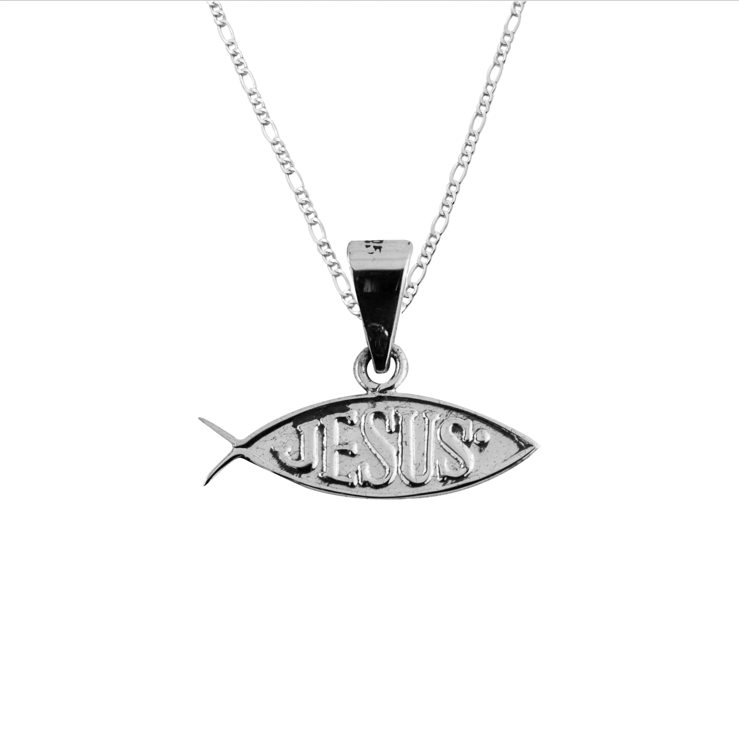 Beautiful piece of jewelry crafted in fine .925 sterling silver by Mexican artisans. This silver pendant, a die-cut Jesus fish design, measures 2.1 cm tall (including the bail) and 1.9 cm wide. The price includes a 55 cm long, 20-gauge chain.